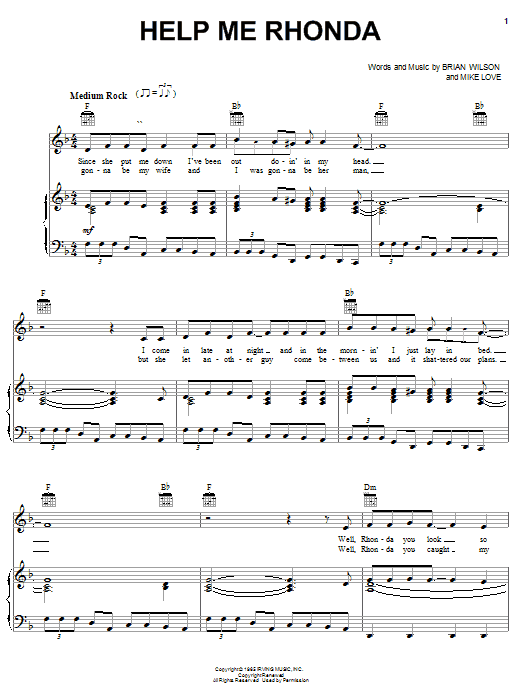 Download or print The Beach Boys Help Me Rhonda sheet music, chords and digital score arranged for Big Note Piano. This Rock score includes 4 page(s).