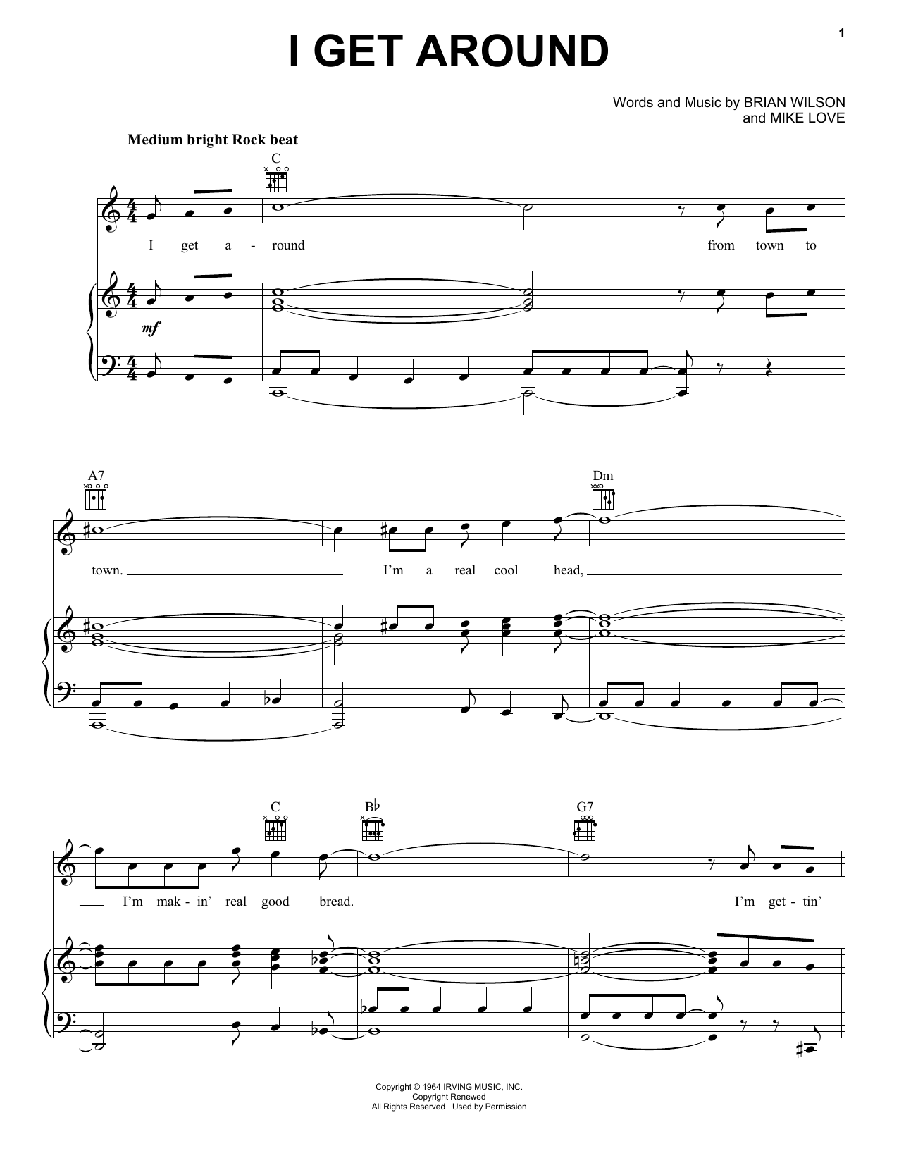 Download or print The Beach Boys I Get Around sheet music, chords and digital score arranged for Violin Solo. This Pop score includes 1 page(s).