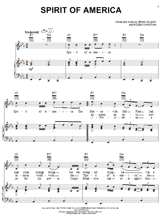 Download or print The Beach Boys Spirit Of America sheet music, chords and digital score arranged for Piano, Vocal & Guitar Chords (Right-Hand Melody). This Oldies score includes 2 page(s).