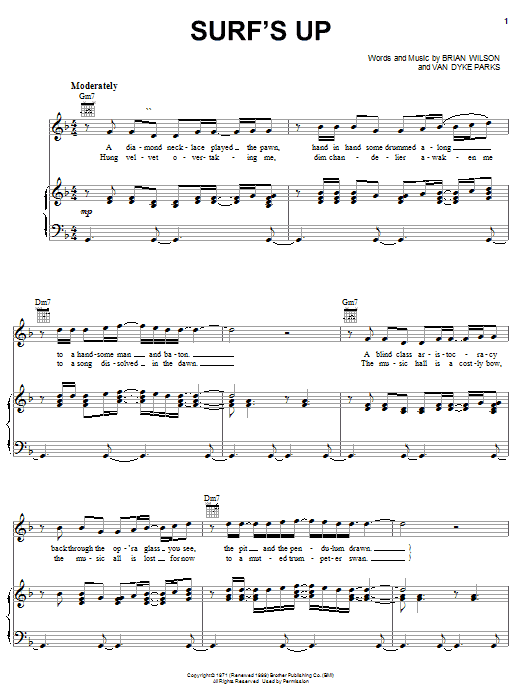 Download or print The Beach Boys Surf's Up sheet music, chords and digital score arranged for Guitar Chords/Lyrics. This Pop score includes 3 page(s).