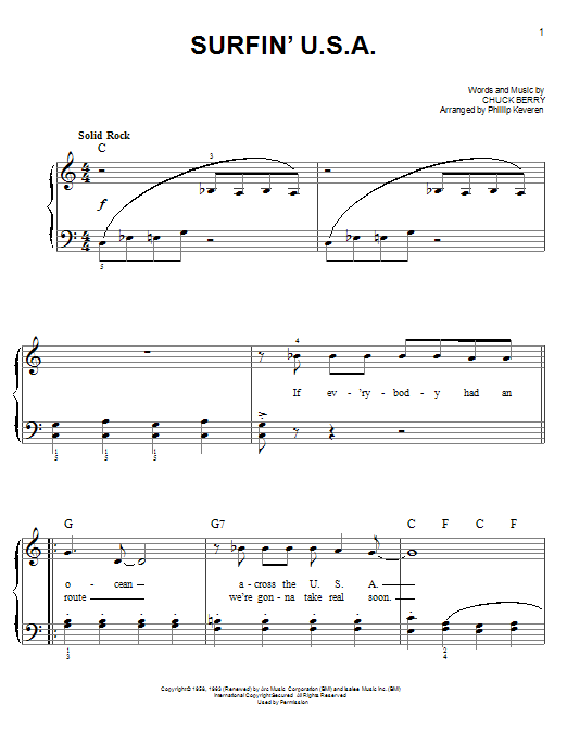 Download or print The Beach Boys Surfin' U.S.A. (arr. Phillip Keveren) sheet music, chords and digital score arranged for Easy Piano. This Oldies score includes 4 page(s).