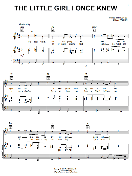 Download or print The Beach Boys The Little Girl I Once Knew sheet music, chords and digital score arranged for Piano, Vocal & Guitar Chords (Right-Hand Melody). This Oldies score includes 4 page(s).