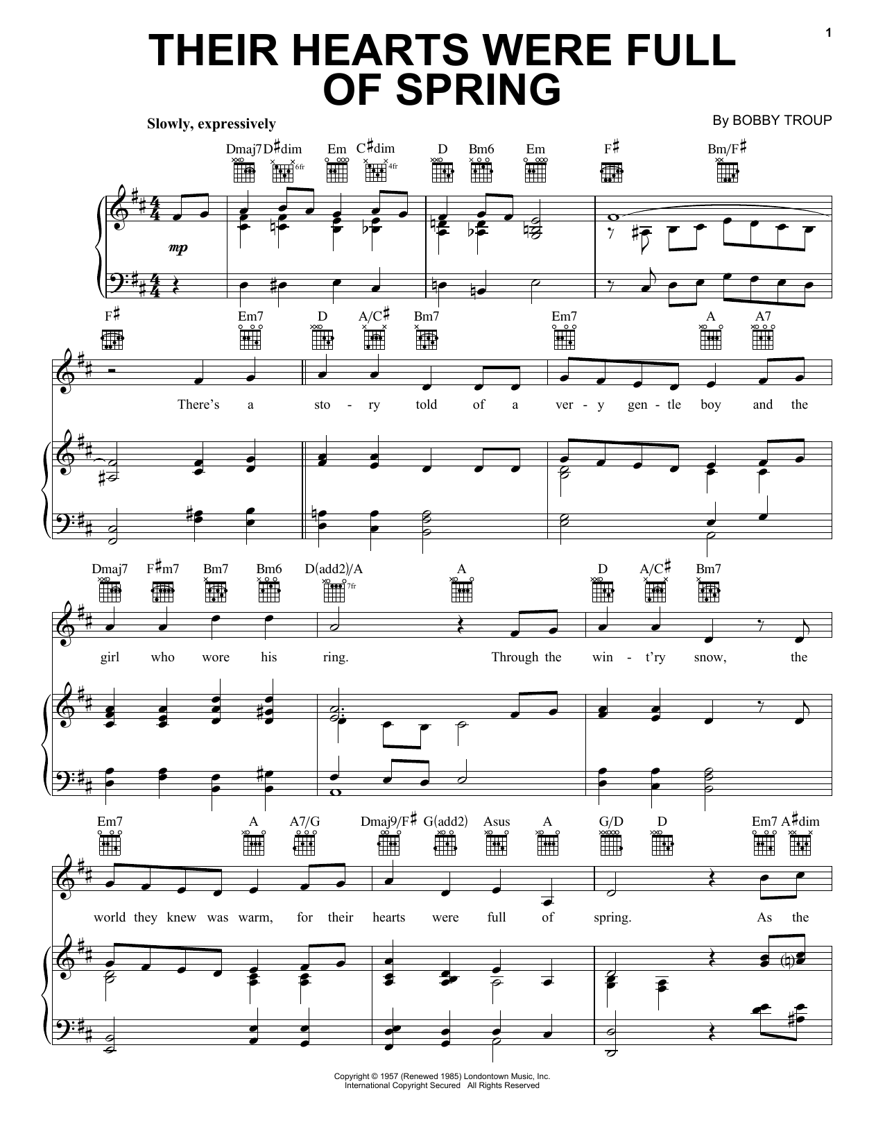 Download or print The Beach Boys Their Hearts Were Full Of Spring sheet music, chords and digital score arranged for Piano, Vocal & Guitar Chords (Right-Hand Melody). This Pop score includes 3 page(s).