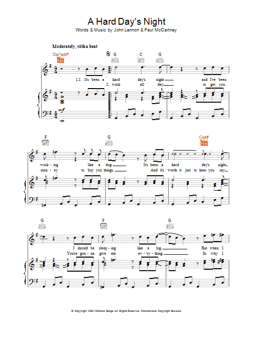 Download or print The Beatles A Hard Day's Night sheet music, chords and digital score arranged for Ocarina. This Pop score includes 1 page(s).