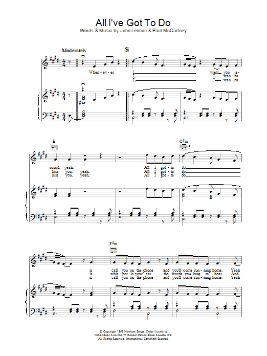 Download or print The Beatles All I've Got To Do sheet music, chords and digital score arranged for Piano, Vocal & Guitar Chords. This Pop score includes 3 page(s).