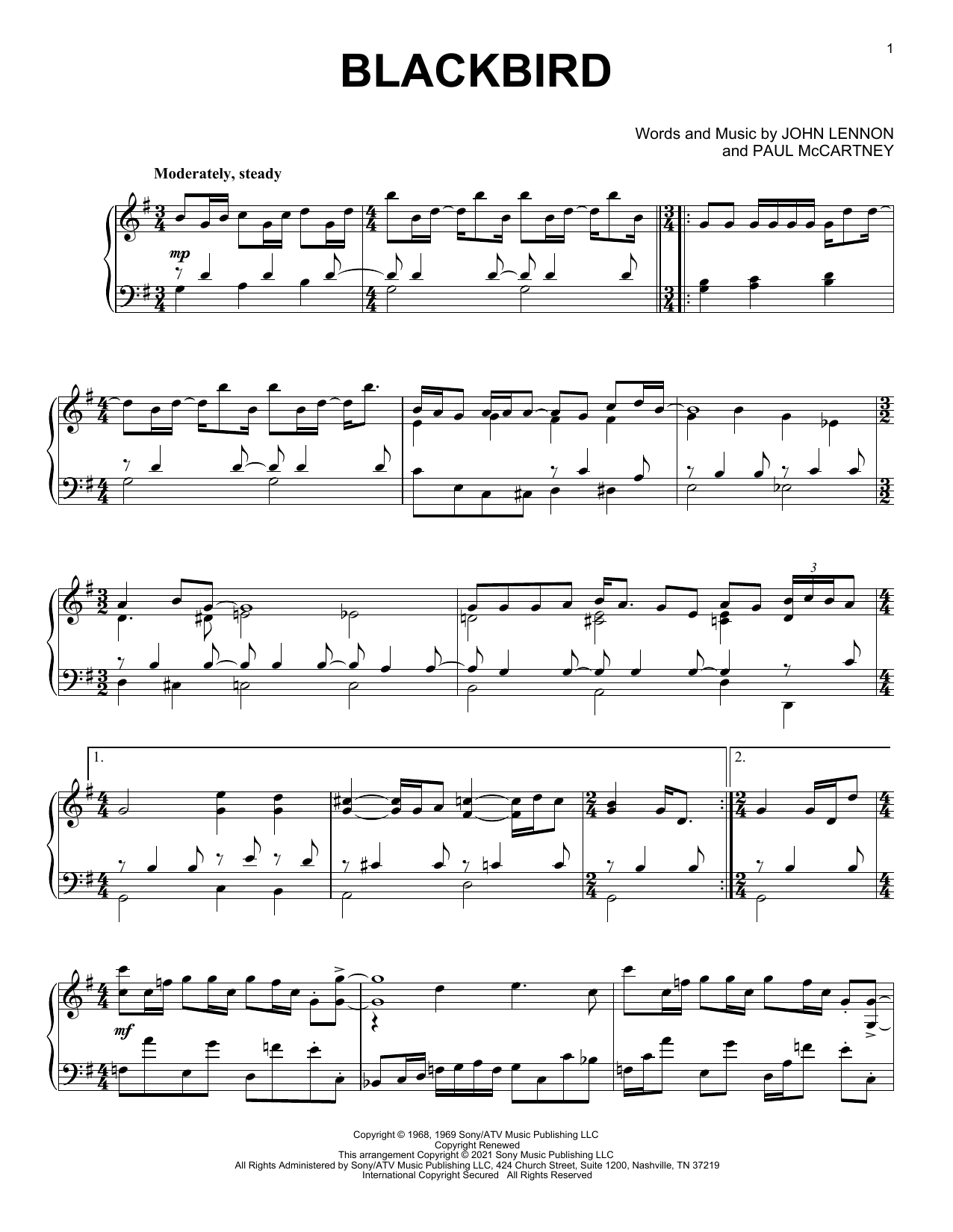 Download or print The Beatles Blackbird [Classical version] sheet music, chords and digital score arranged for Piano Solo. This Pop score includes 3 page(s).