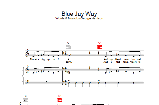 Download or print The Beatles Blue Jay Way sheet music, chords and digital score arranged for Piano, Vocal & Guitar Chords (Right-Hand Melody). This Film/TV score includes 4 page(s).