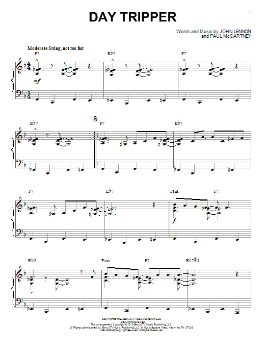 Download or print The Beatles Day Tripper [Jazz version] (arr. Brent Edstrom) sheet music, chords and digital score arranged for Piano Solo. This Pop score includes 5 page(s).