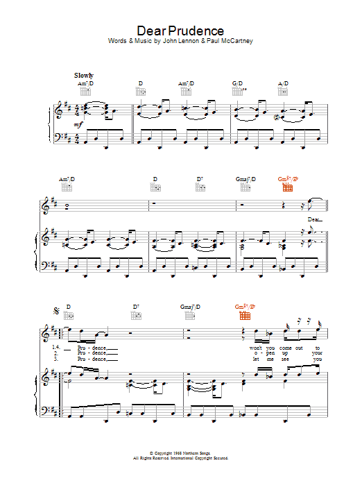 Quick facts Dear Prudence about digital sheet music