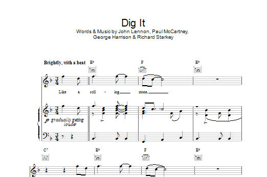 Download or print The Beatles Dig It sheet music, chords and digital score arranged for Guitar Chords/Lyrics. This Rock score includes 2 page(s).