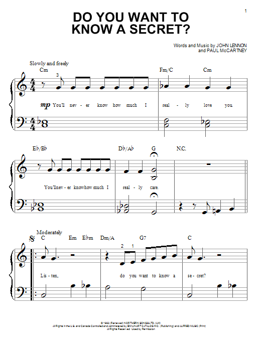 Quick facts Do You Want To Know A Secret? about digital sheet music