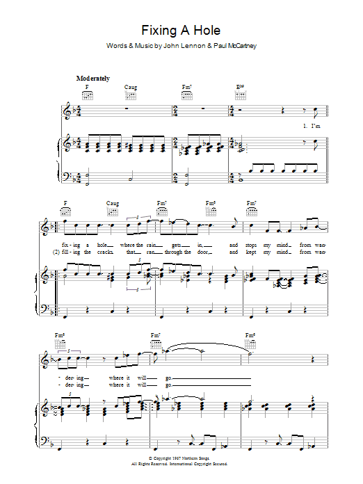 Download or print The Beatles Fixing A Hole sheet music, chords and digital score arranged for Easy Lead Sheet / Fake Book. This Pop score includes 3 page(s).
