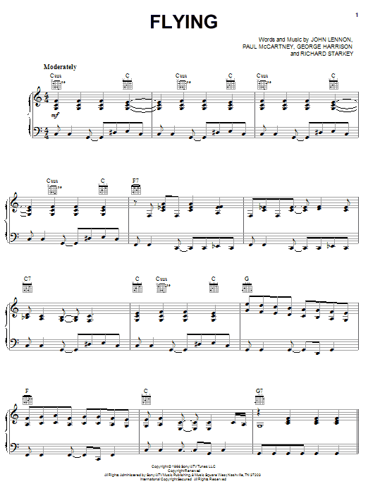 Download or print The Beatles Flying sheet music, chords and digital score arranged for Easy Piano. This Rock score includes 2 page(s).