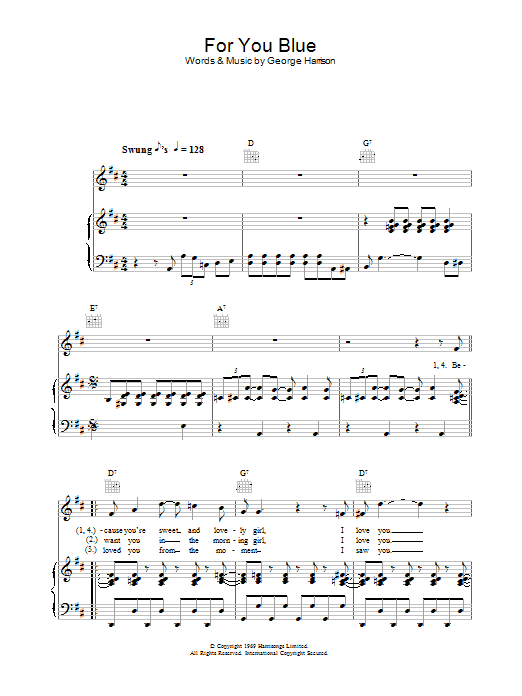 Download or print The Beatles For You Blue sheet music, chords and digital score arranged for Lead Sheet / Fake Book. This Pop score includes 2 page(s).