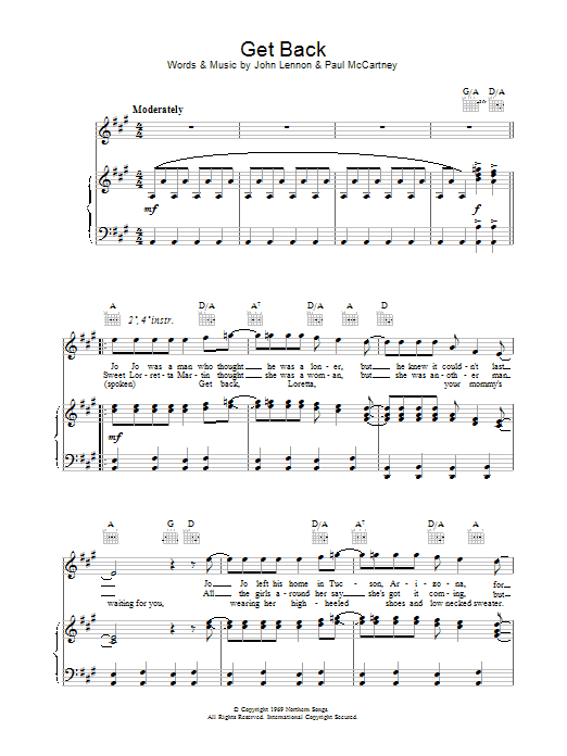 Download or print The Beatles Get Back sheet music, chords and digital score arranged for Bells Solo. This Pop score includes 1 page(s).