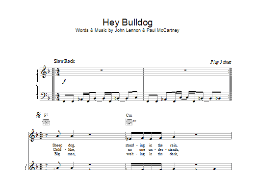 Download or print The Beatles Hey Bulldog sheet music, chords and digital score arranged for Easy Lead Sheet / Fake Book. This Pop score includes 2 page(s).