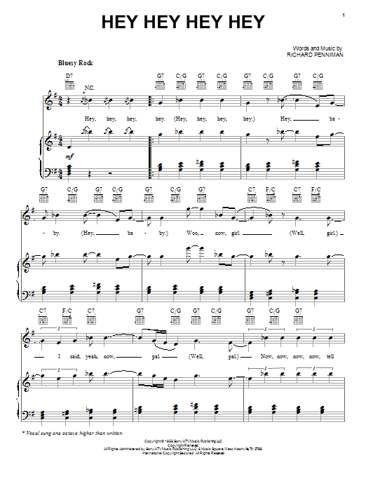 Download or print The Beatles Hey Hey Hey Hey sheet music, chords and digital score arranged for Piano, Vocal & Guitar Chords (Right-Hand Melody). This Pop score includes 3 page(s).