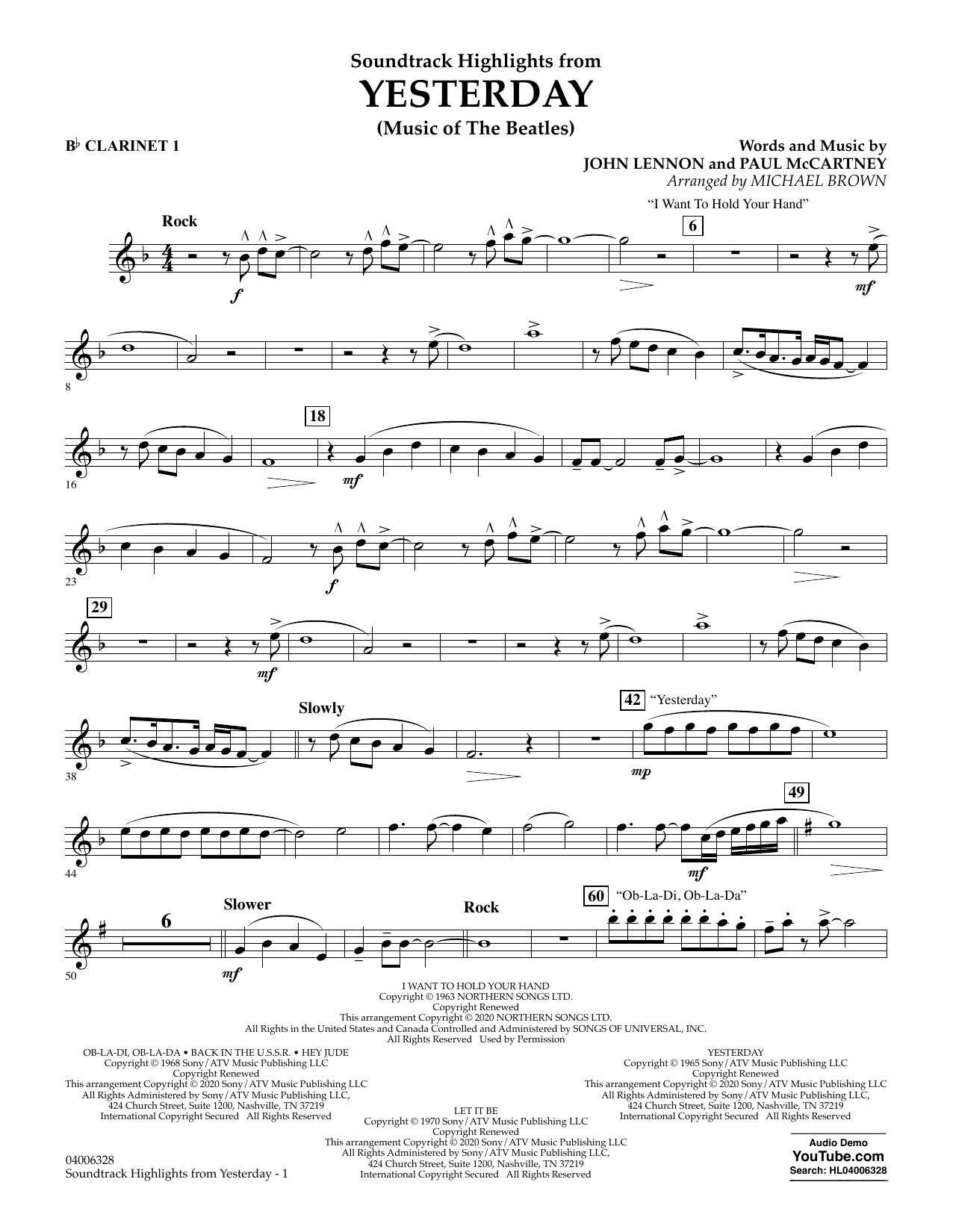 Quick facts Highlights from Yesterday (Music Of The Beatles) (arr. Michael Brown) - Bb Clarinet 1 about digital sheet music