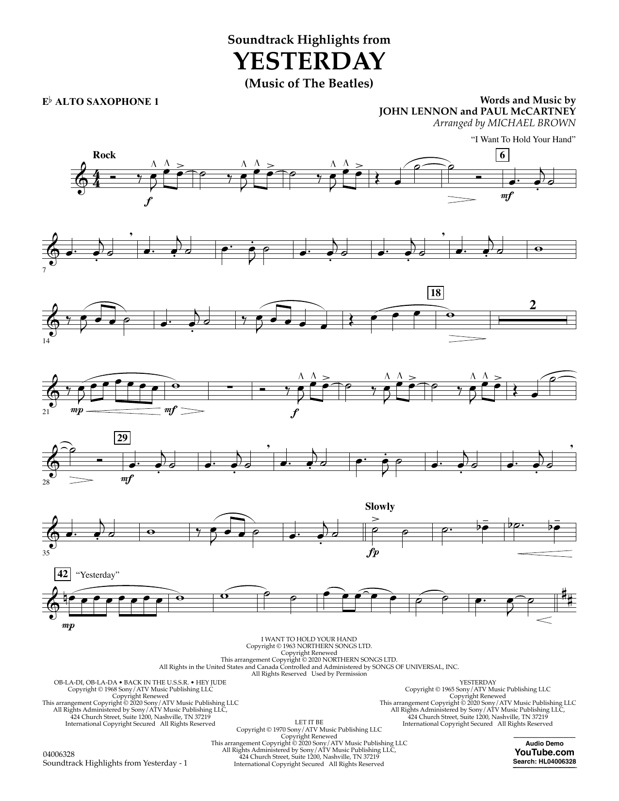 Quick facts Highlights from Yesterday (Music Of The Beatles) (arr. Michael Brown) - Eb Alto Saxophone 1 about digital sheet music