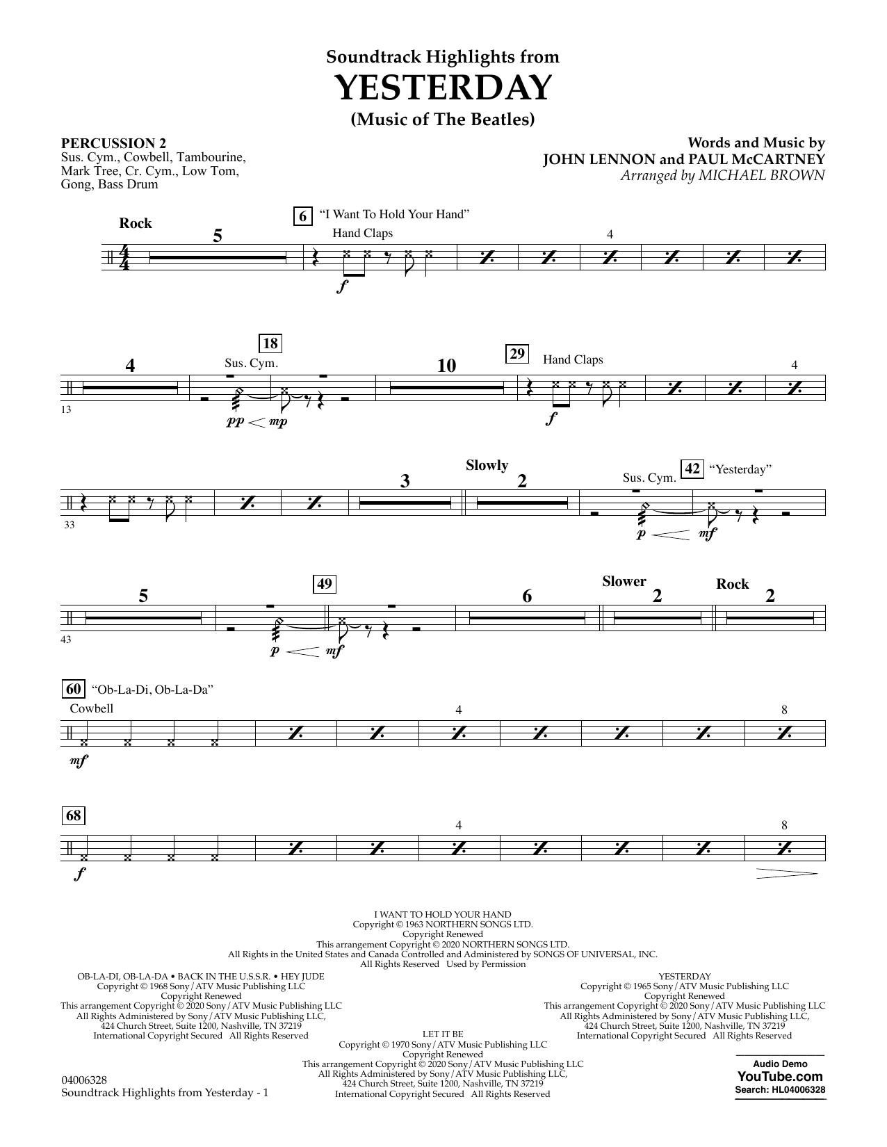 Quick facts Highlights from Yesterday (Music Of The Beatles) (arr. Michael Brown) - Percussion 2 about digital sheet music