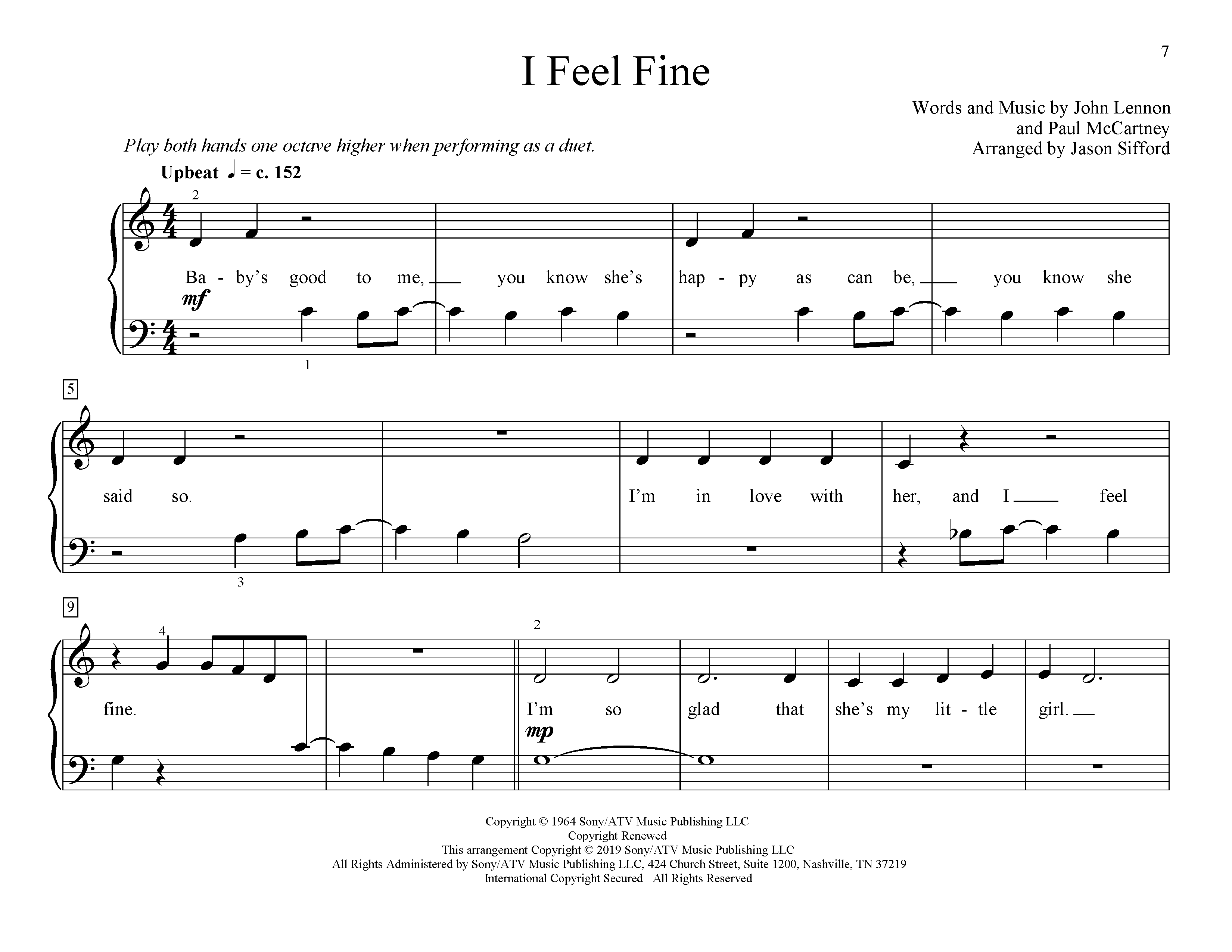 Quick facts I Feel Fine (arr. Jason Sifford) about digital sheet music