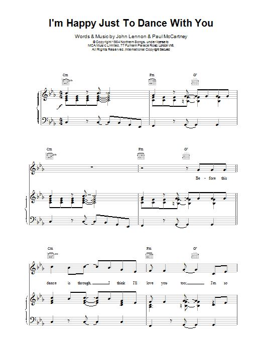 Download or print The Beatles I'm Happy Just To Dance With You sheet music, chords and digital score arranged for Guitar Chords/Lyrics. This Pop score includes 2 page(s).