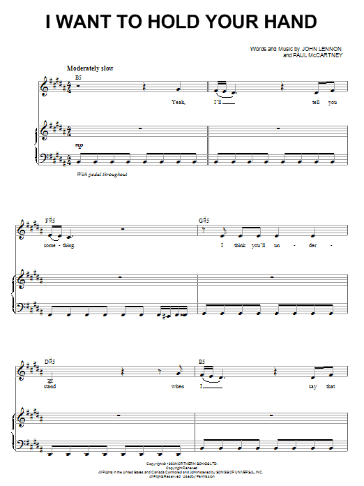 Download or print The Beatles I Want To Hold Your Hand (from Across The Universe) sheet music, chords and digital score arranged for Piano & Vocal. This Film/TV score includes 6 page(s).
