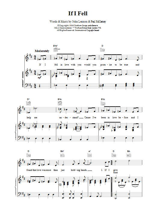 Quick facts If I Fell about digital sheet music