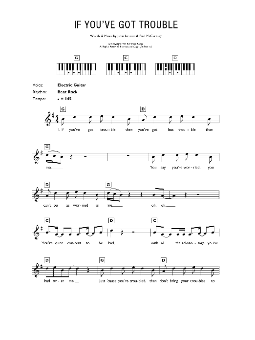 Download or print The Beatles If You've Got Trouble sheet music, chords and digital score arranged for Piano Chords/Lyrics. This Pop score includes 3 page(s).