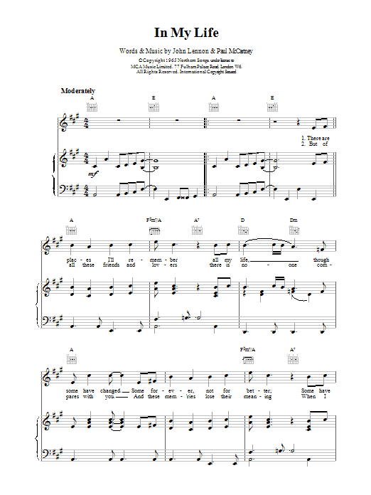 Quick facts In My Life about digital sheet music