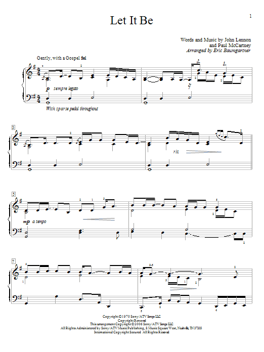 Download or print Eric Baumgartner Let It Be sheet music, chords and digital score arranged for Educational Piano. This Film/TV score includes 4 page(s).