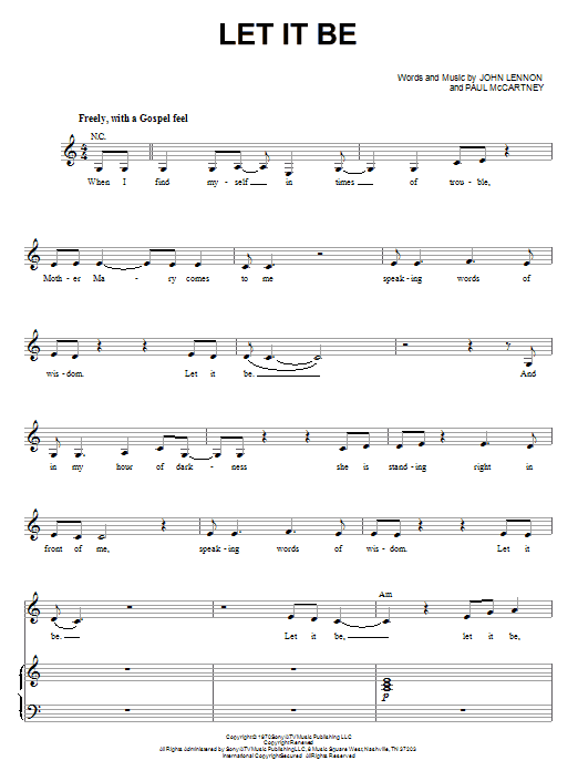 Download or print The Beatles Let It Be (from Across The Universe) sheet music, chords and digital score arranged for Piano & Vocal. This Film/TV score includes 7 page(s).
