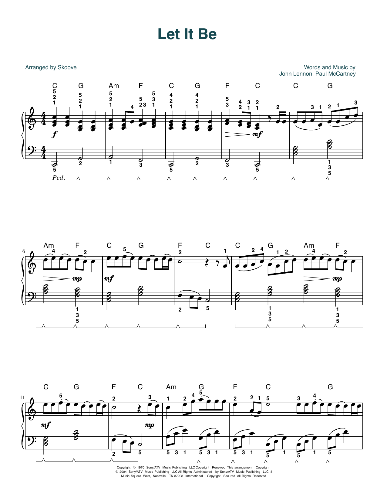 Download or print The Beatles Let It Be (arr. Skoove) sheet music, chords and digital score arranged for Piano Solo. This Pop score includes 3 page(s).