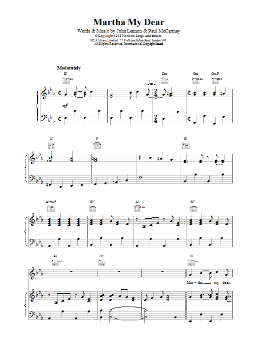 Download or print The Beatles Martha My Dear sheet music, chords and digital score arranged for Easy Lead Sheet / Fake Book. This Pop score includes 2 page(s).