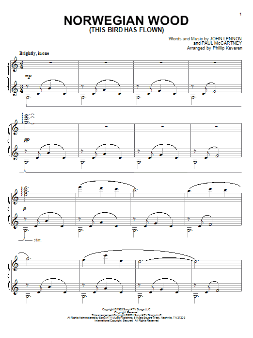 Quick facts Norwegian Wood (This Bird Has Flown) (arr. Phillip Keveren) about digital sheet music