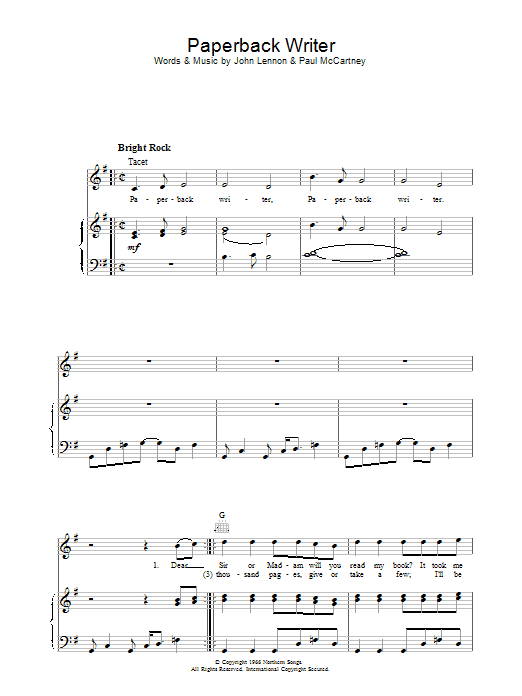 Download or print The Beatles Paperback Writer sheet music, chords and digital score arranged for Bells Solo. This Pop score includes 1 page(s).