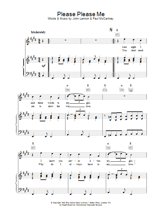 Download or print The Beatles Please Please Me sheet music, chords and digital score arranged for Guitar Chords/Lyrics. This Pop score includes 2 page(s).