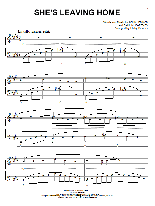 Quick facts She's Leaving Home (arr. Phillip Keveren) about digital sheet music