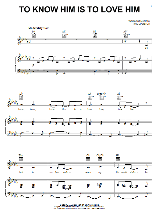 Download or print Phil Spector To Know Him Is To Love Him sheet music, chords and digital score arranged for Lead Sheet / Fake Book. This Pop score includes 1 page(s).