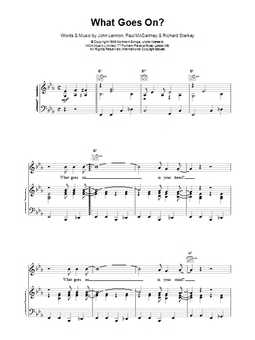 Download or print The Beatles What Goes On? sheet music, chords and digital score arranged for Piano, Vocal & Guitar Chords. This Pop score includes 5 page(s).