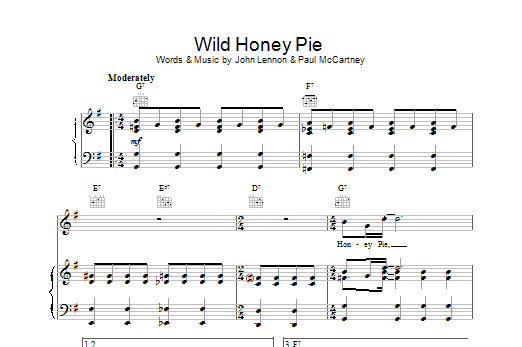 Download or print The Beatles Wild Honey Pie sheet music, chords and digital score arranged for Piano, Vocal & Guitar Chords. This Pop score includes 1 page(s).