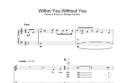 Download or print The Beatles Within You Without You sheet music, chords and digital score arranged for Piano, Vocal & Guitar Chords. This Pop score includes 1 page(s).