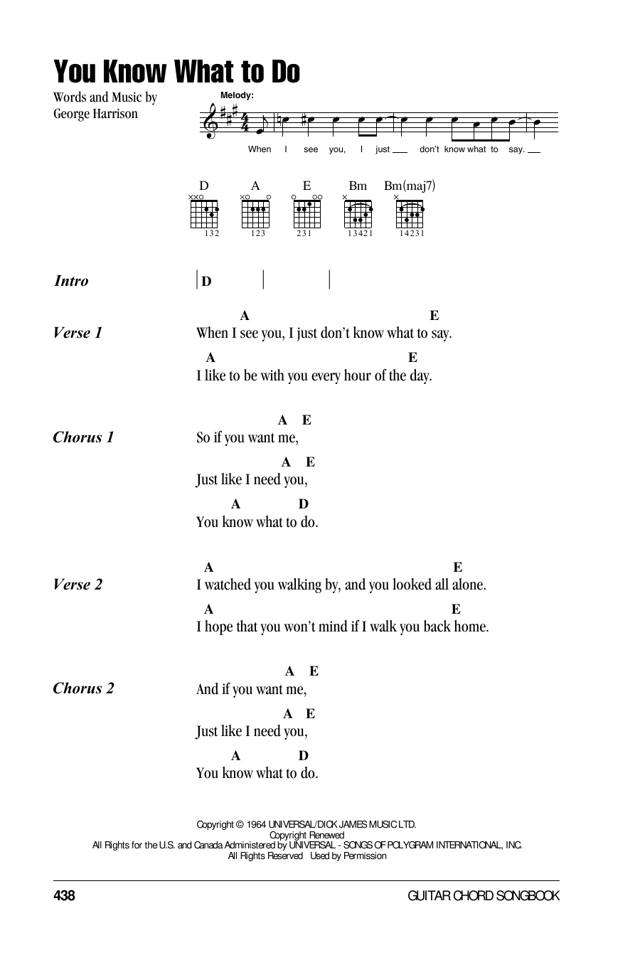 Download or print The Beatles You Know What To Do sheet music, chords and digital score arranged for Guitar Chords/Lyrics. This Rock score includes 2 page(s).