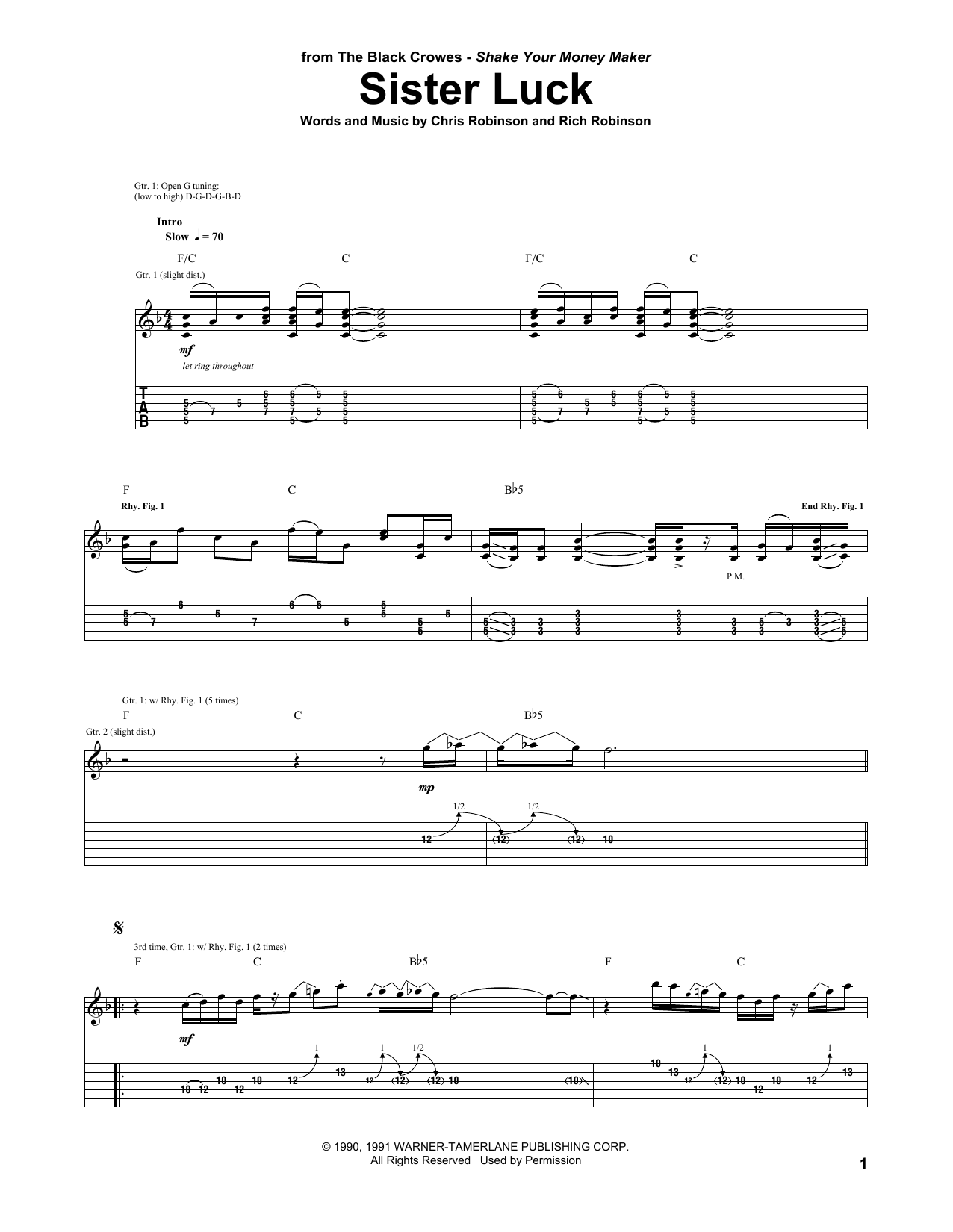 Download or print The Black Crowes Sister Luck sheet music, chords and digital score arranged for Guitar Tab. This Pop score includes 8 page(s).