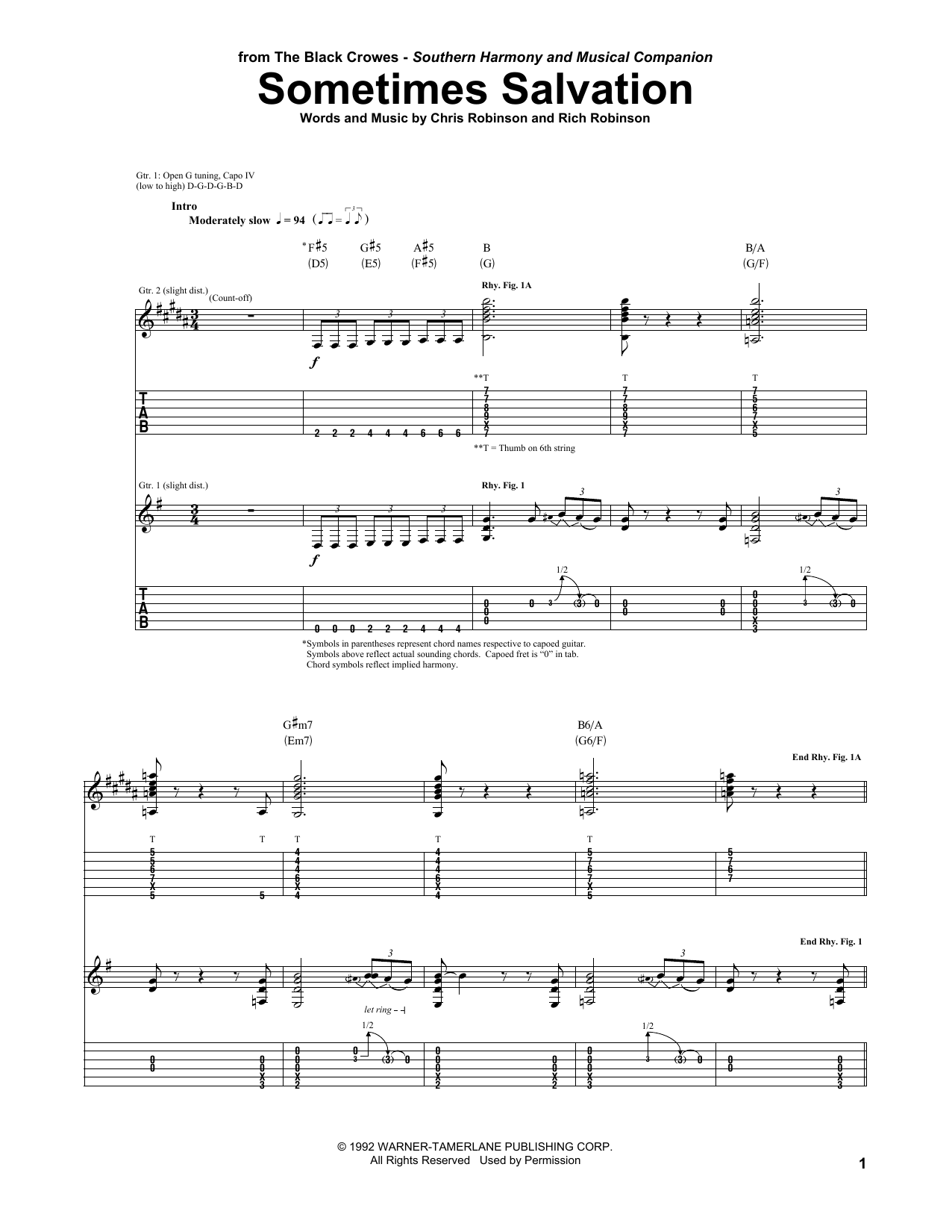 Download or print The Black Crowes Sometimes Salvation sheet music, chords and digital score arranged for Guitar Tab. This Pop score includes 8 page(s).