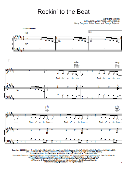 Download or print The Black Eyed Peas Rockin' To The Beat sheet music, chords and digital score arranged for Piano, Vocal & Guitar Chords (Right-Hand Melody). This Hip-Hop score includes 11 page(s).