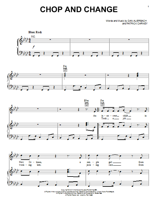 Download or print The Black Keys Chop And Change sheet music, chords and digital score arranged for Piano, Vocal & Guitar Chords (Right-Hand Melody). This Blues score includes 4 page(s).