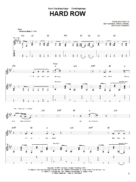 Download or print The Black Keys Hard Row sheet music, chords and digital score arranged for Piano, Vocal & Guitar Chords (Right-Hand Melody). This Blues score includes 5 page(s).