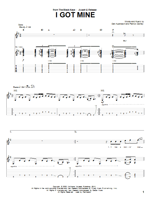 Download or print The Black Keys I Got Mine sheet music, chords and digital score arranged for Piano, Vocal & Guitar Chords (Right-Hand Melody). This Blues score includes 5 page(s).