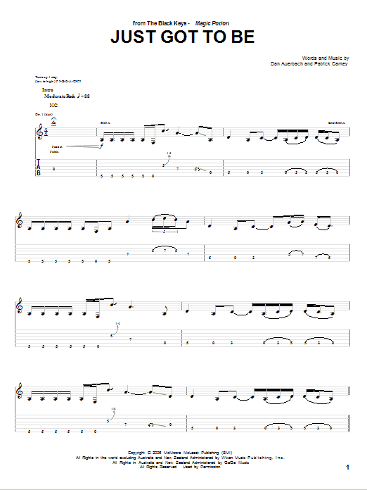 Download or print The Black Keys Just Got To Be sheet music, chords and digital score arranged for Guitar Tab. This Pop score includes 5 page(s).